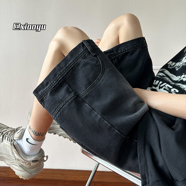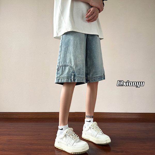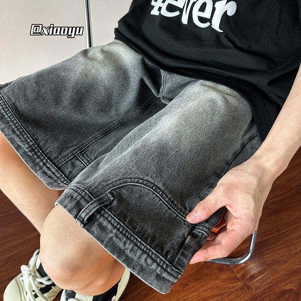 Denim skirt, men's summer thin shorts, sexy trousers, gradient, loose straight fit