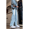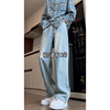Blue autumn demi-season jeans, trousers, plus size, American style, loose straight fit
