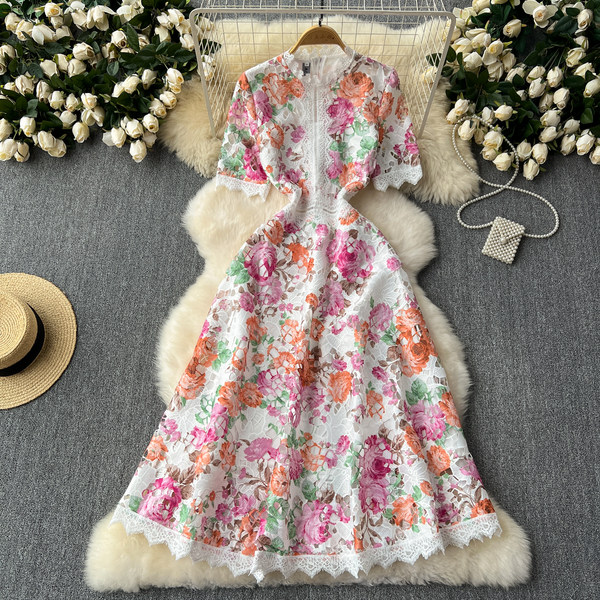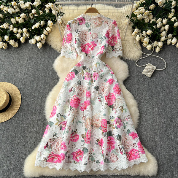 Elite summer retro elegant lace fitted brace, dress, french style