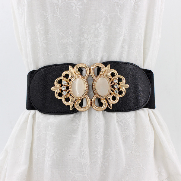 Universal fashionable waist belt, stone inlay, elastic waist, cat's eye