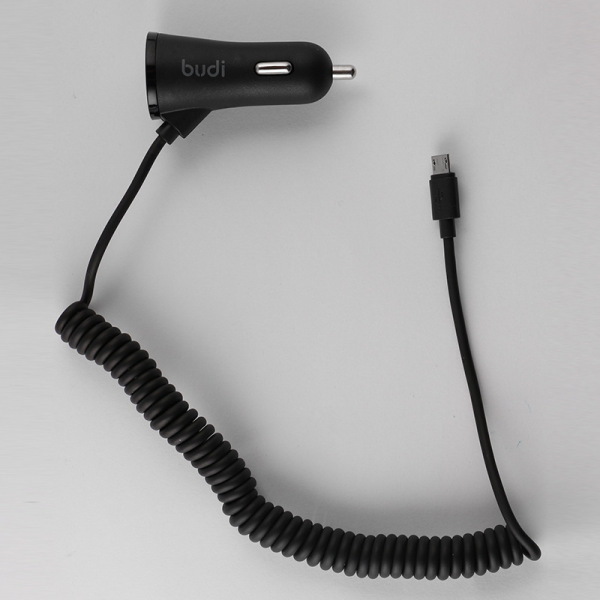 budi Spring wire car charger Single port USB car charging with micro cable 2.4A smart car charging fast charging