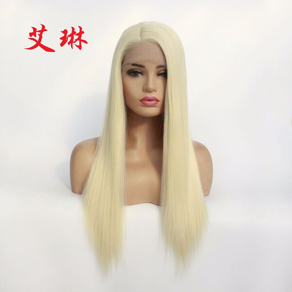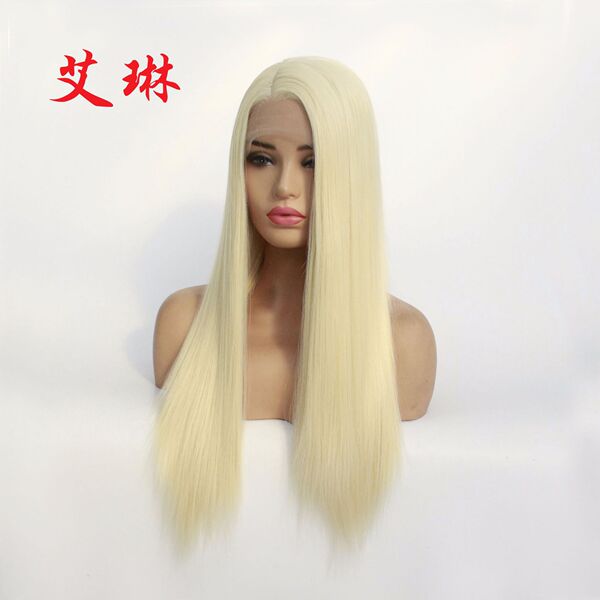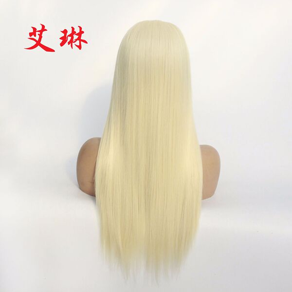 Golden helmet, wig, straight hair, European style, mid length