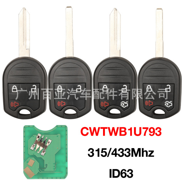 Suitable for 3 -key 4 -key Ford remote control car key CWTWB1U793 4D63 chip 315/433MHz