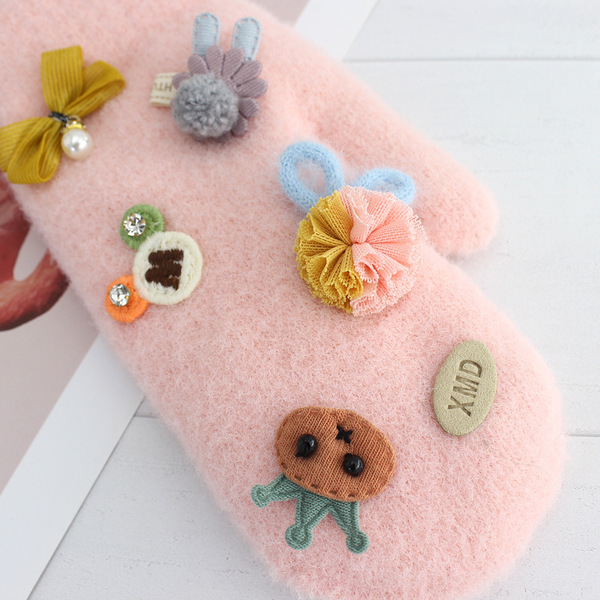 Demi-season children's keep warm gloves, cute warm hand cream, for teenagers