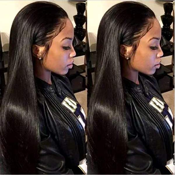 Wig, black helmet with hair parting, straight hair, European style