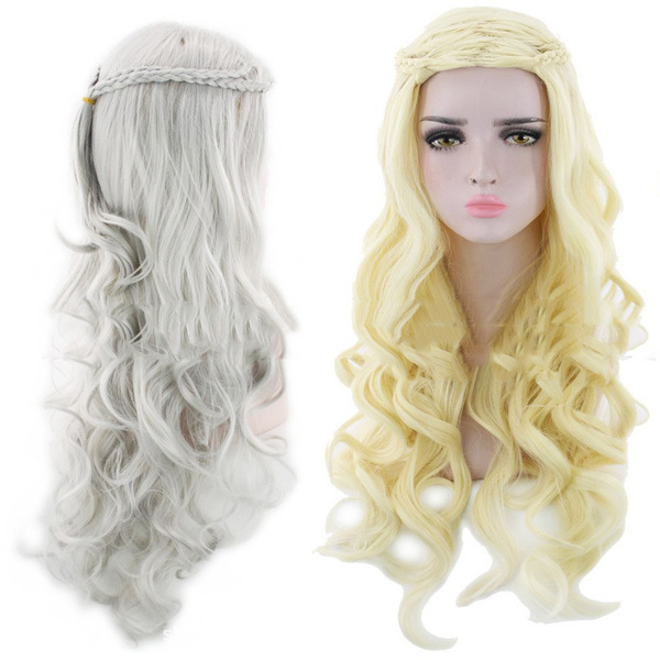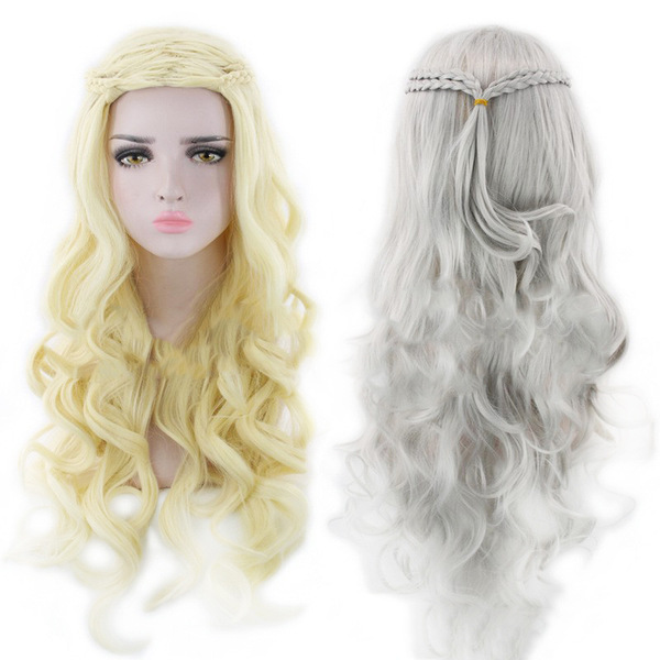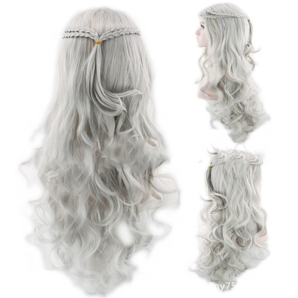 The right to the right of ice and fire, Dannilis matte 72cm woven silver spot long curly curly hair wig girl