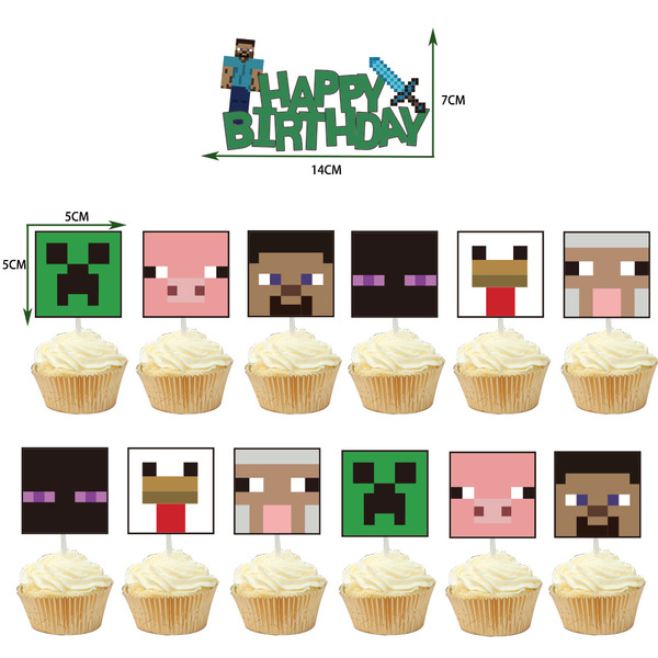 My World Cake Account Set Pixels Game Birthday Happy Party Decoration Products