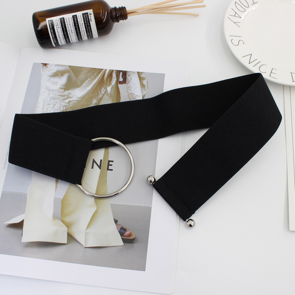 Metal belt, ring, brand elastic dress, elastic waist, Korean style