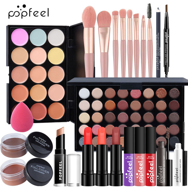 Eye shadow, lip gloss, foundation, lipstick, makeup primer, set, (Cross-border trading), wholesale, for beginners