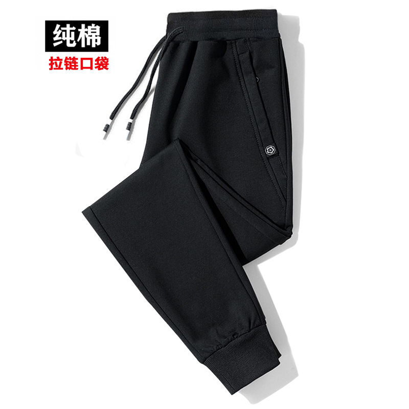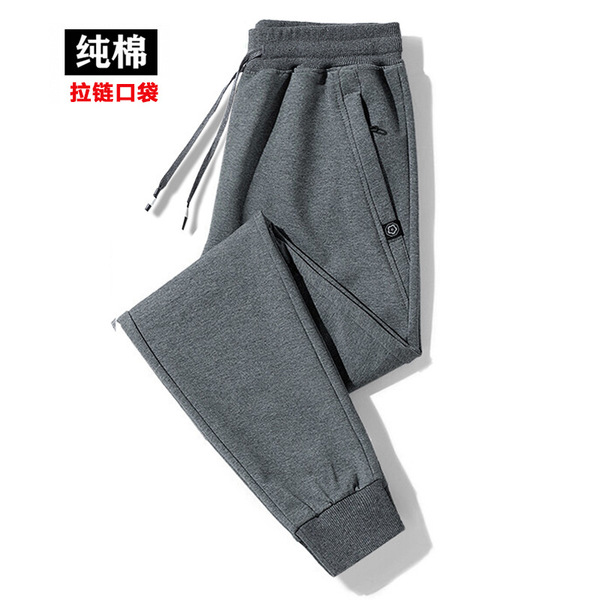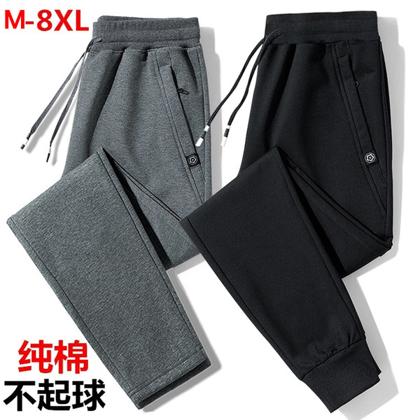 Men's autumn spring cotton sports trousers, oversize, loose straight fit
