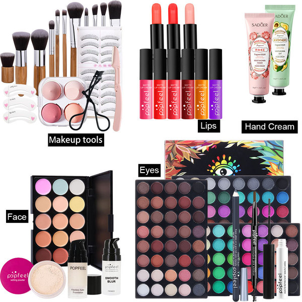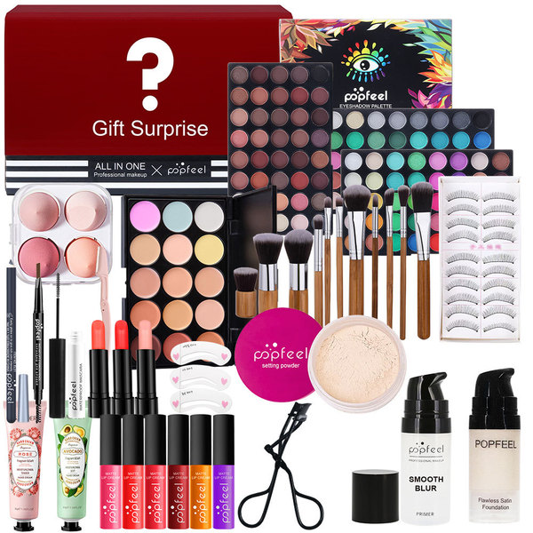 Professional cosmetic bag, brush, eyeshadow palette, lip gloss, set, gift box