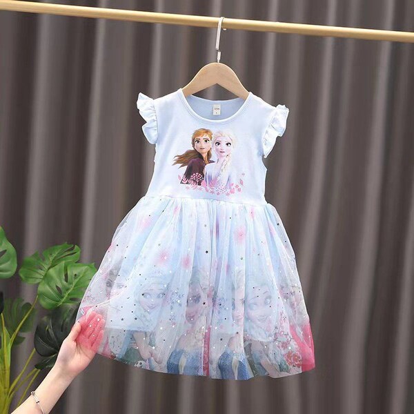Summer dress, skirt, small princess costume, children's clothing, “Frozen”, with short sleeve