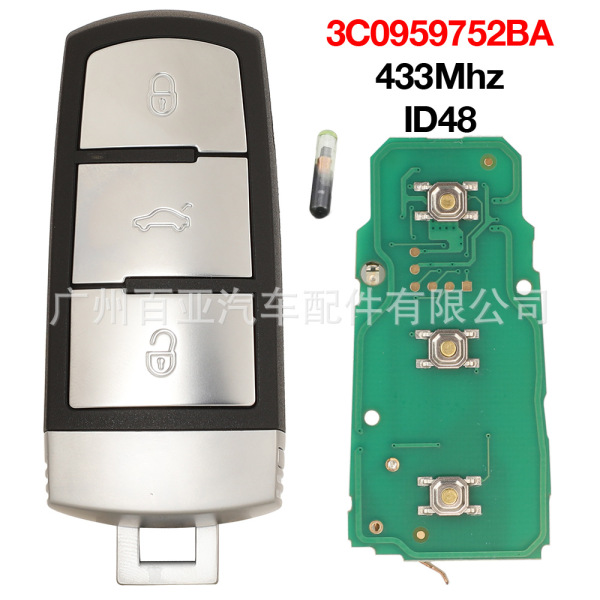 Suitable for Volkswagen 3 -key semi -intelligent remote control car key 3C0959752BA 433MHz ID48 chip