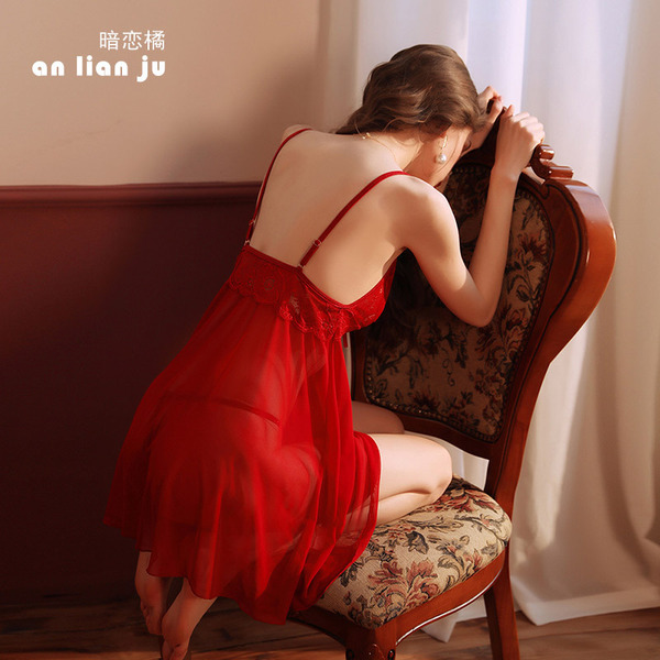 暗恋橘 Fuchsia pijama, sexy underwear with bow, slip dress