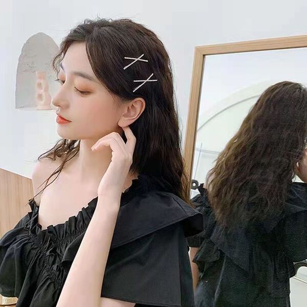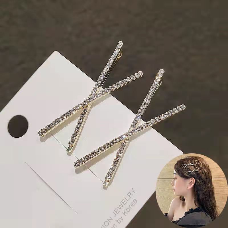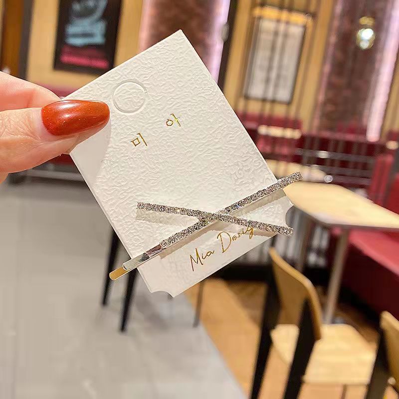 Korean temperament hairpin minimalist cross model, a rhinestone bangs, the side clip the girl top clip net red female hair card