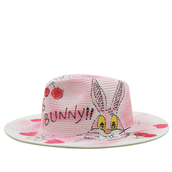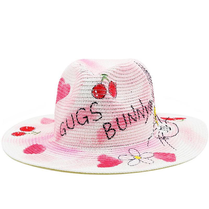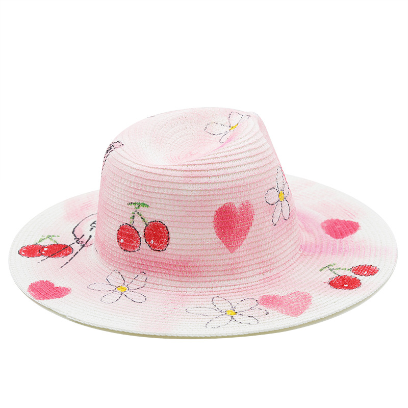 Beach straw universal sun hat for traveling, hand painting, Korean style, sun protection