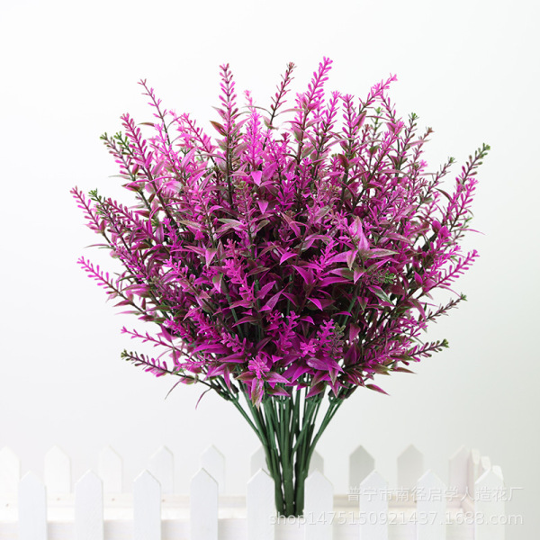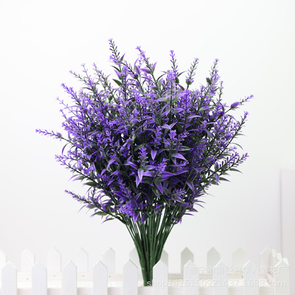 Cross -border simulation artificial green plastic fake flowers lavender home wedding outdoor garden balcony plant sharp leaf ears