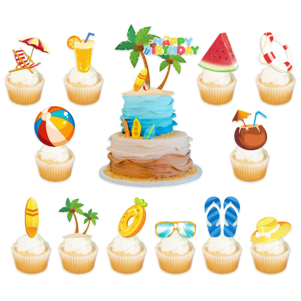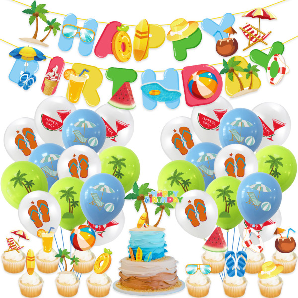 Summer beach holiday theme pull flag balloon cake account set set of birthday swimming pool party decorative supplies