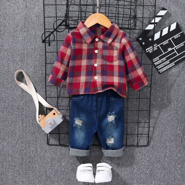 Autumn children's long-sleeve for boys, shirt, denim set, children's clothing