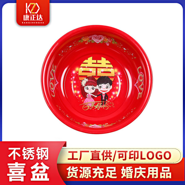 Red cartoon washbasin stainless steel for bride, Chinese style, wholesale