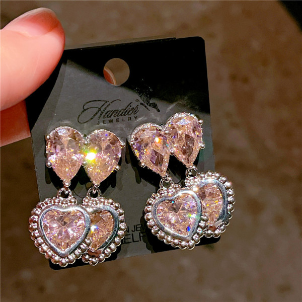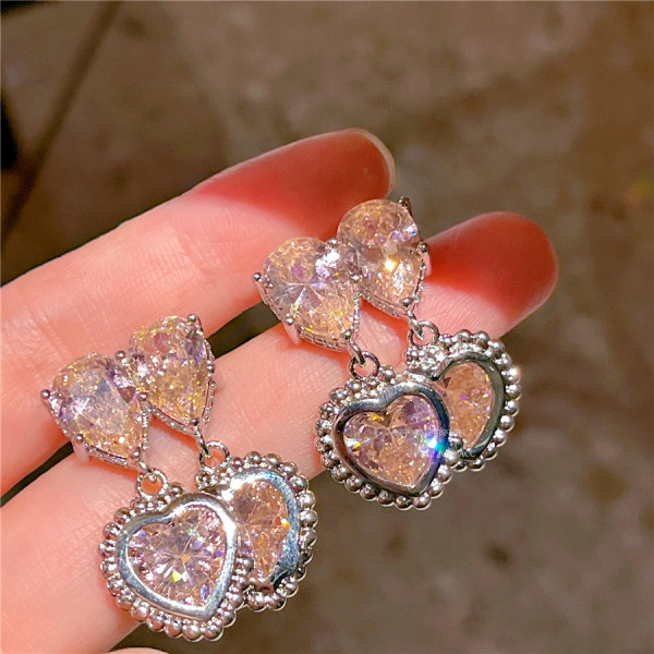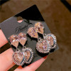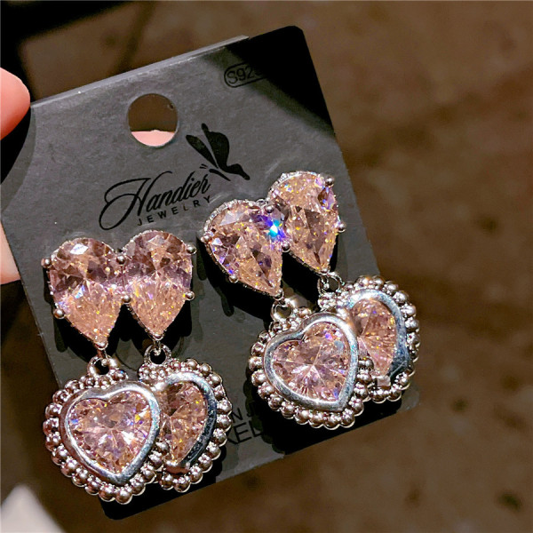 Fuchsia earrings, nail sequins, zirconium, Korean style