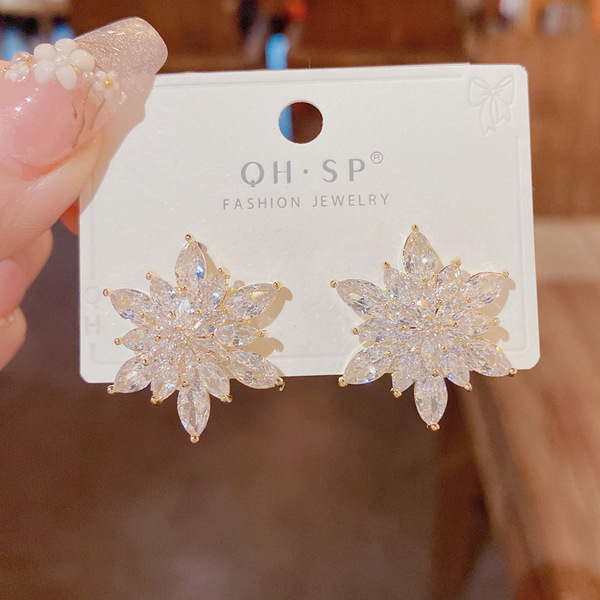 Silver needle, earrings, light luxury style, with snowflakes, high-quality style, wholesale