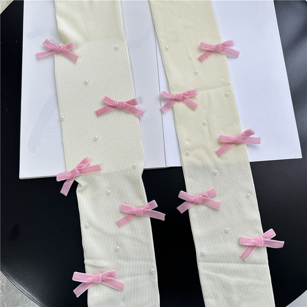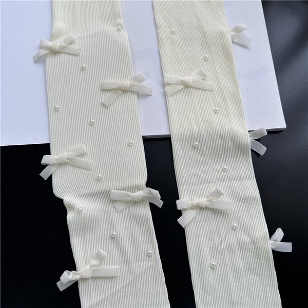 Cute autumn tights with bow from pearl, white Japanese socks, increased thickness, Lolita style