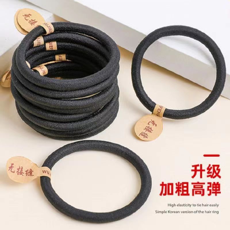Black elastic base harmless hair rope, hair accessory, Korean style, 6mm, simple and elegant design, no hair damage, wholesale