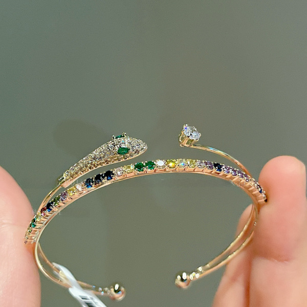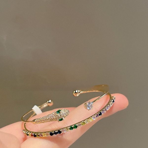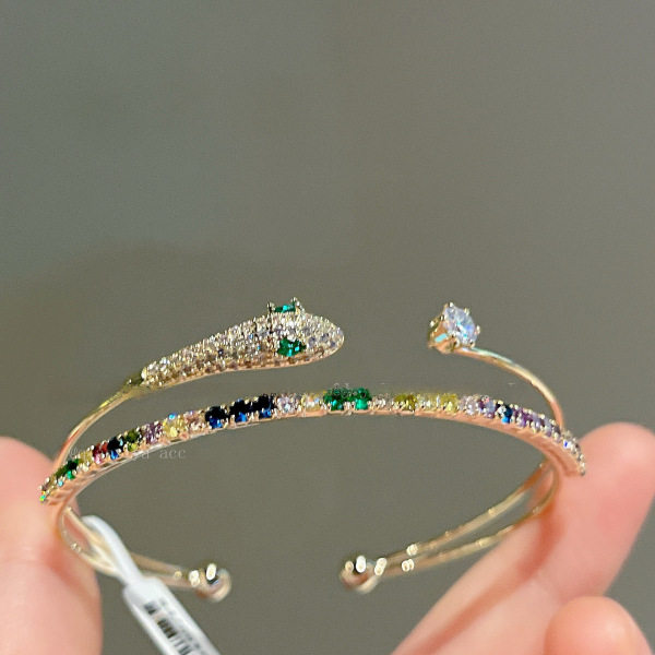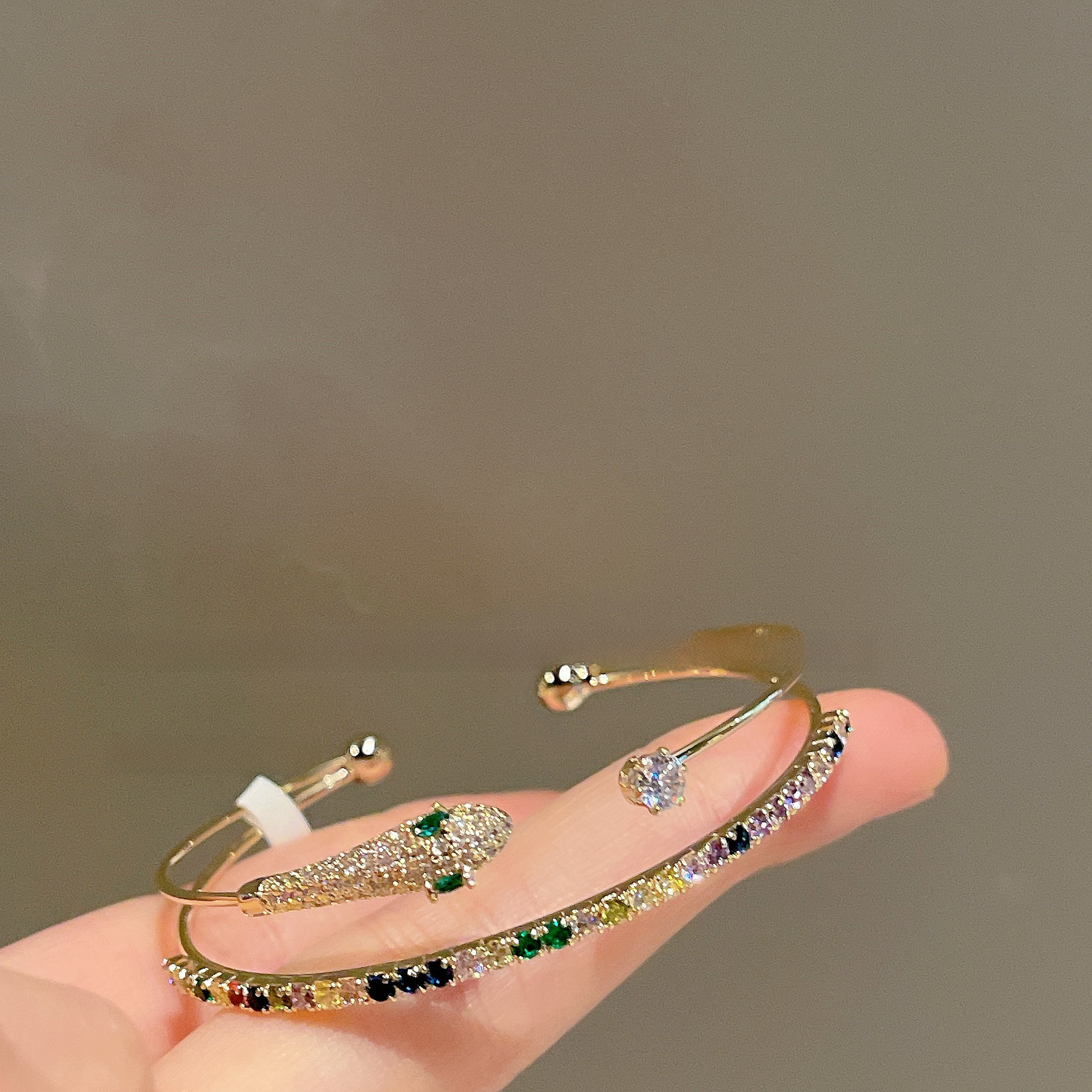 Adjustable bracelet, zirconium, light luxury style, 14 carat, golden color