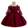 Children's lace small princess costume with bow, dress for early age girl's, European style