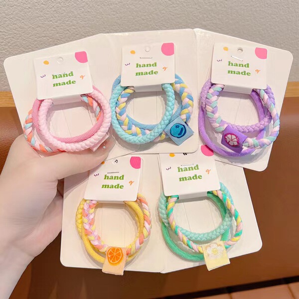 Woven elastic hair rope with pigtail, case, hair accessory, 3 pieces