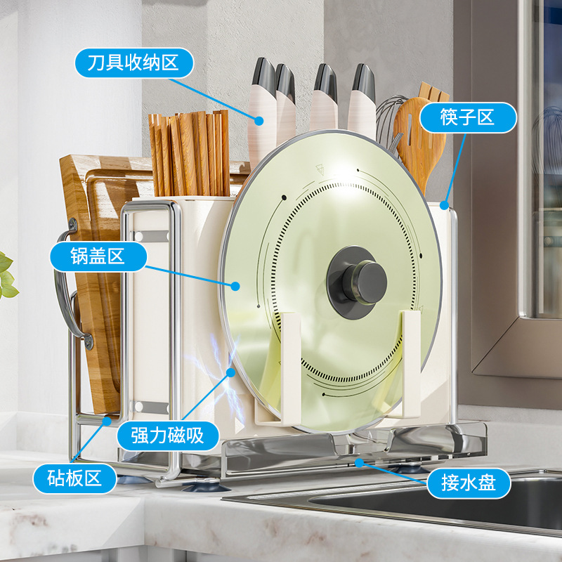 Kitchen knife stand wall-mounted kitchen knife stand tool storage stand without hole punching chopsticks and knife magnetic knife suction stand