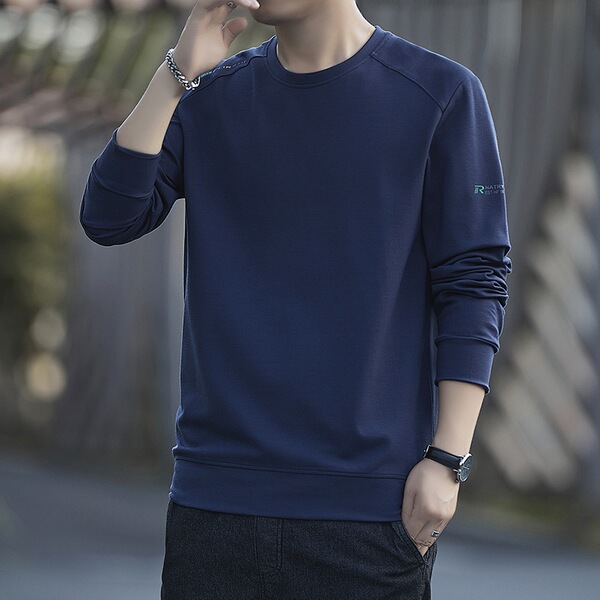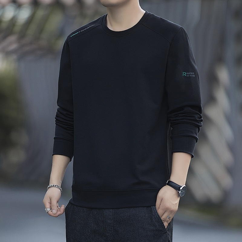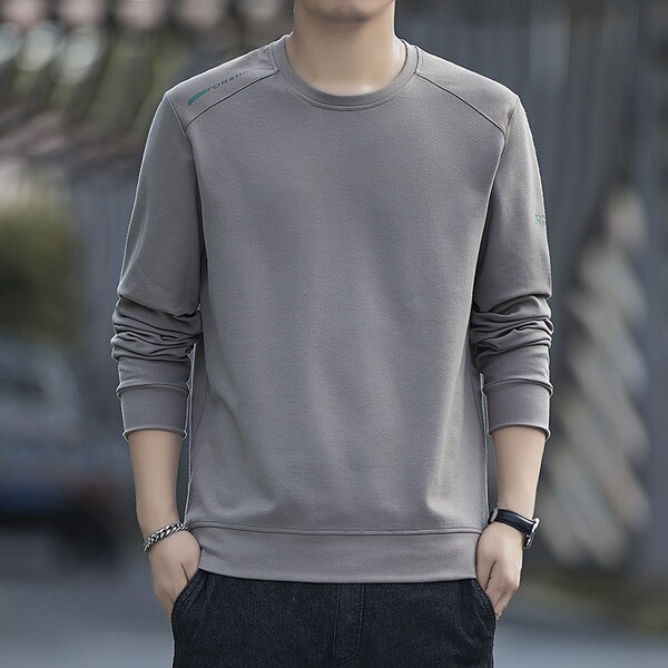 Men's demi-season warm sweatshirt, cotton long-sleeve for leisure, round collar, oversize