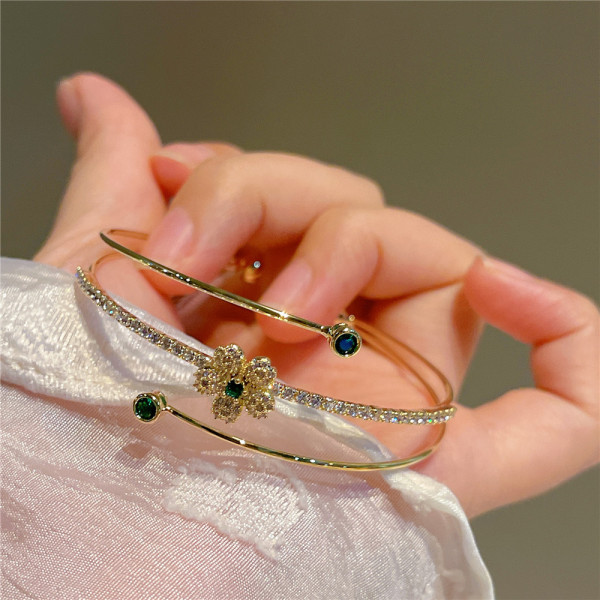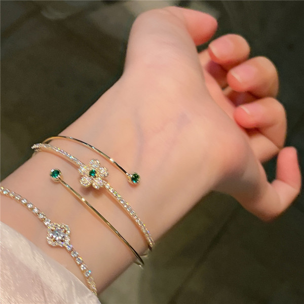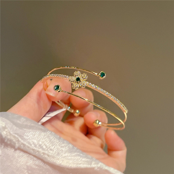 Fashionable universal adjustable green design bracelet flower-shaped, flowered, 2023 collection, trend of season