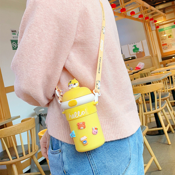 Double-layer cute sticker with glass, glass, handheld suspenders, anti-scald, 3D