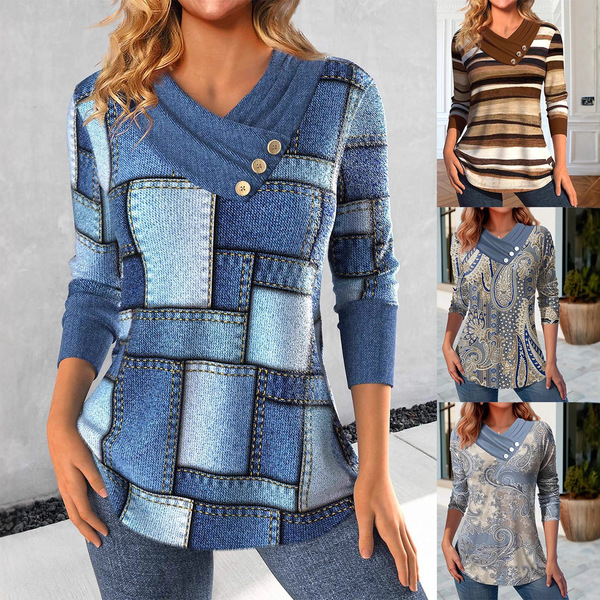 Demi-season long-sleeve for leisure, T-shirt, (Cross-border trading), Amazon, European style, V-neckline