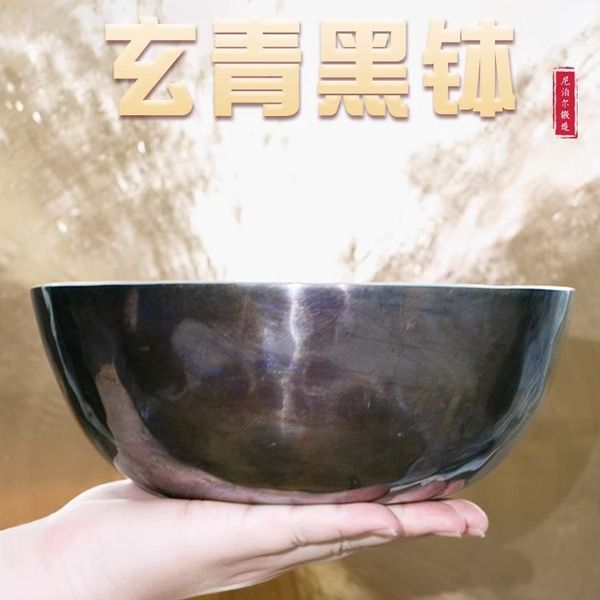 Nepalese handmade black cyan singing bowl, black bowl, Sanskrit bowl, meditation healing bowl, black copper chime, bowl ornaments, direct supply