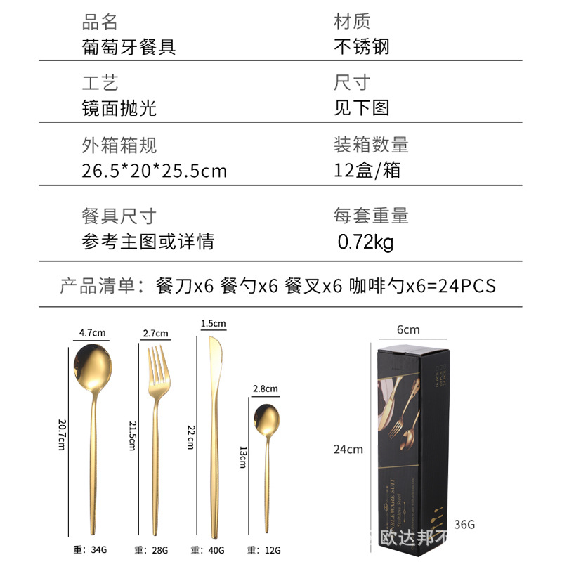 Tableware stainless steel for hotel, spoon, set, gift box, Amazon, 24 pieces