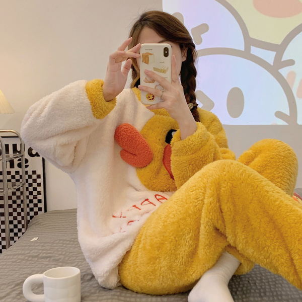 B.Duck, demi-season plush coral velvet pijama, keep warm long-sleeve, trousers, set