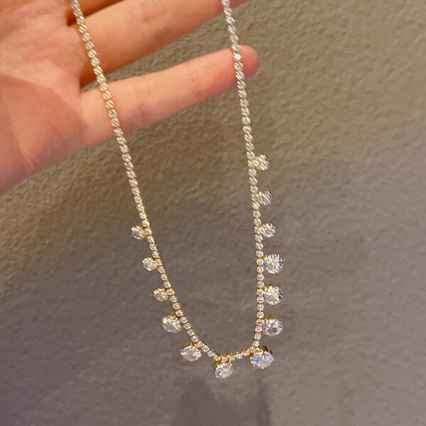 Square small design pendant with zircon, universal sophisticated necklace, Korean style, trend of season, J1130