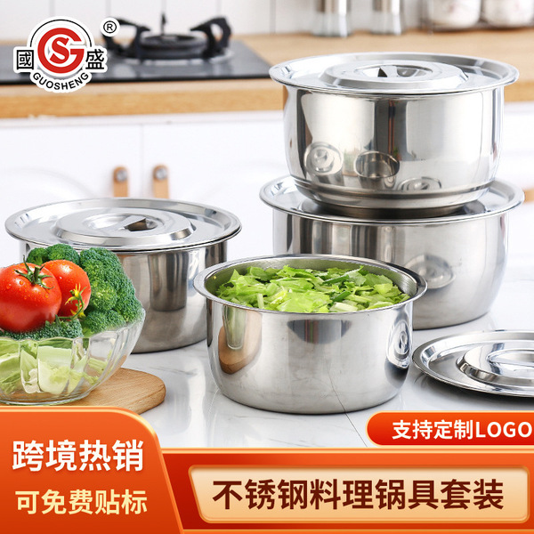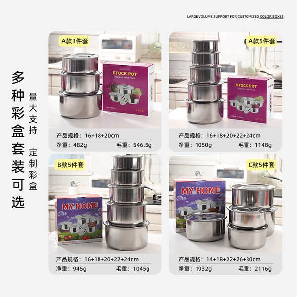 Cross -border direct sales gift pot set stainless steel soup pot five -piece kitchen seasoning bowl buffet feasting tank