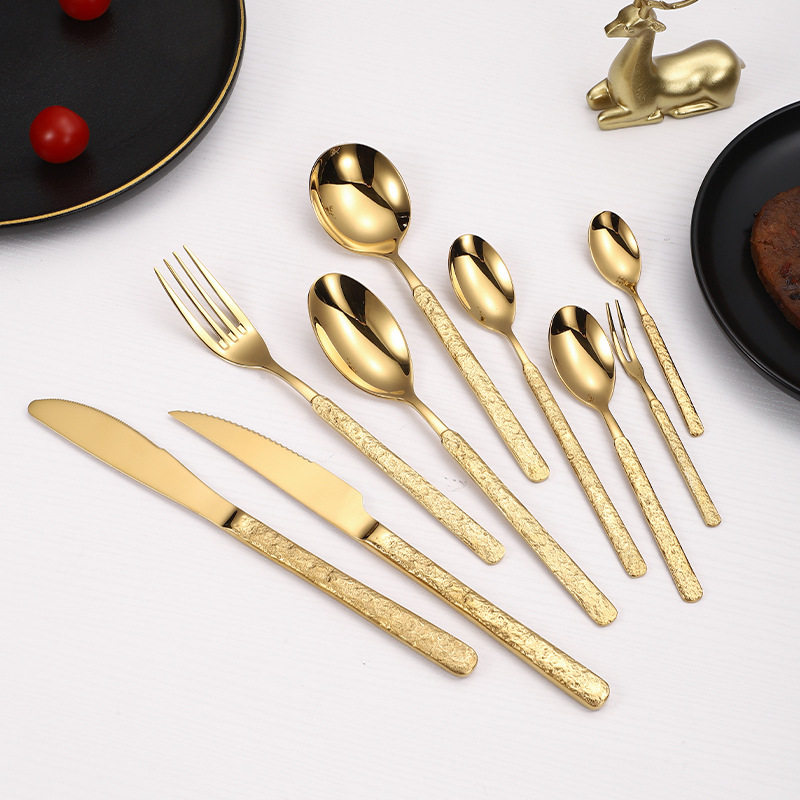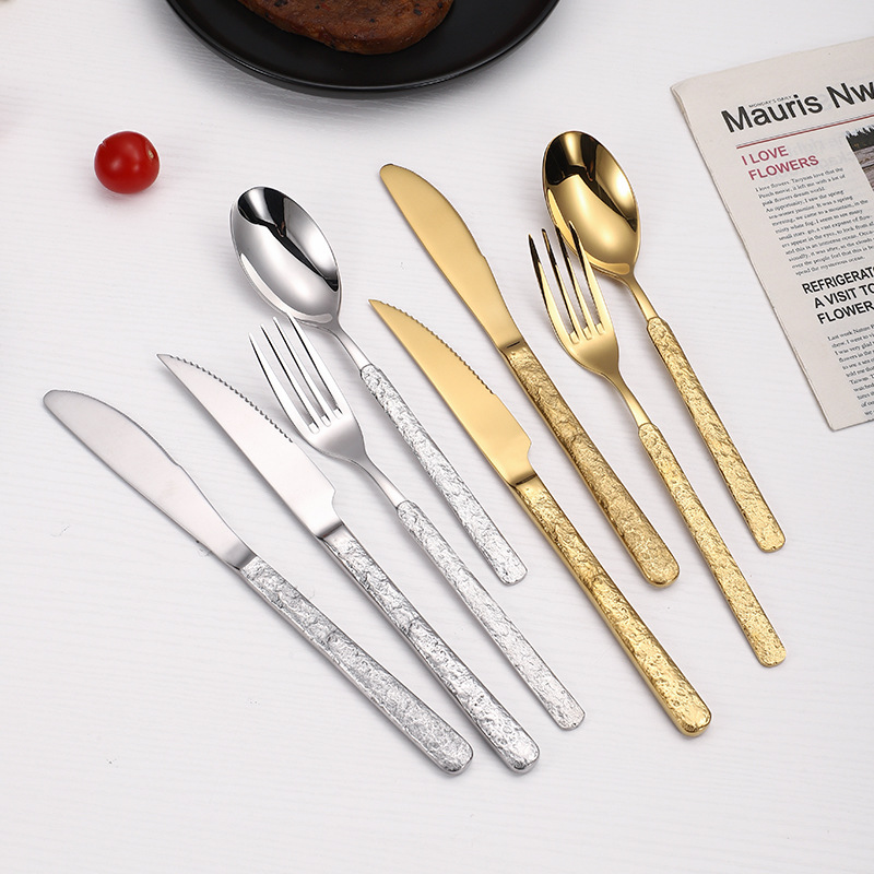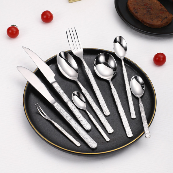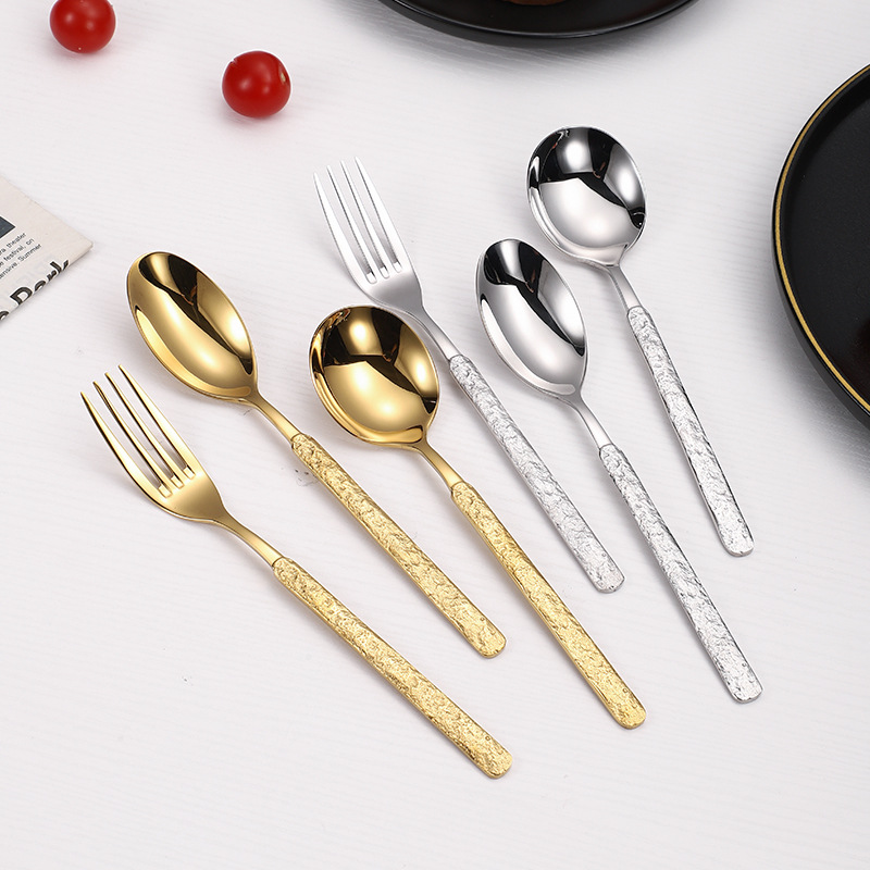 304 stainless steel European -style tableware Creative relief stone pattern Western tableware Household Hotel Bulls, Dragon Board Spoon Fruit Fork