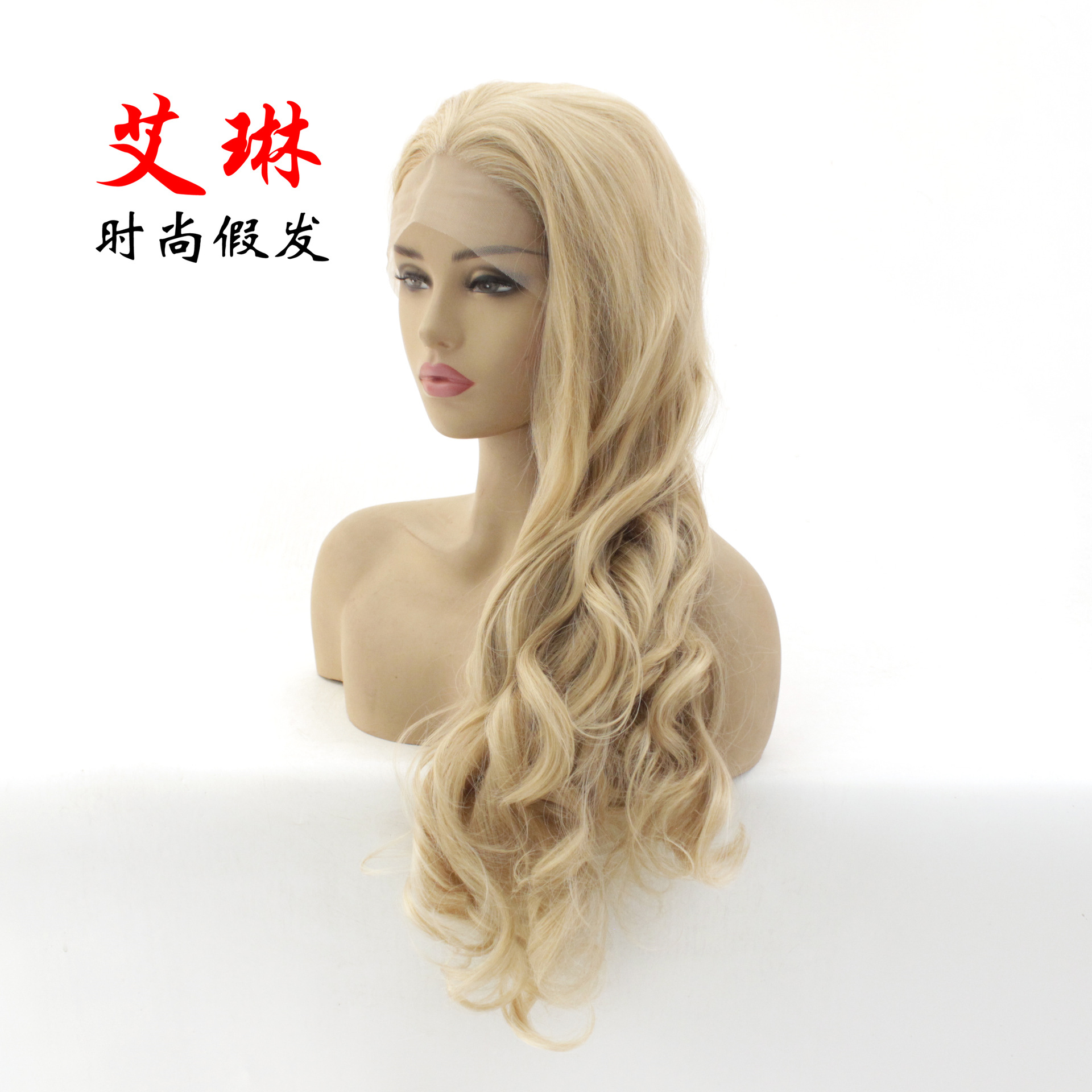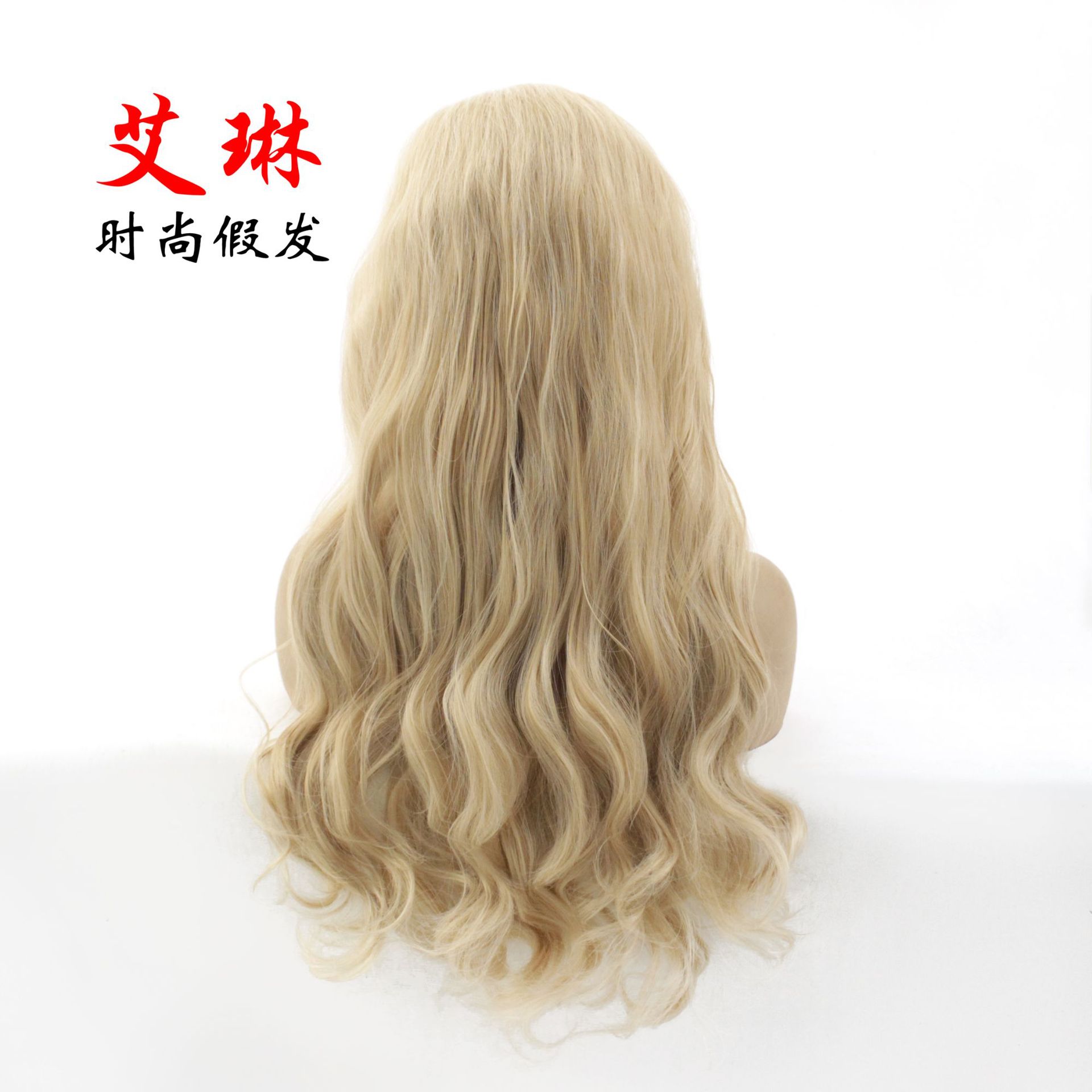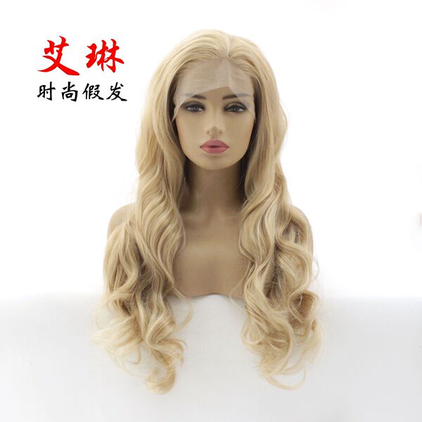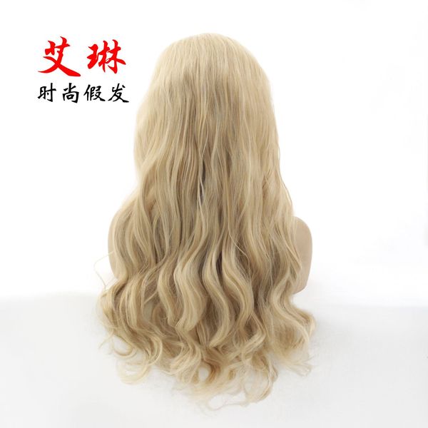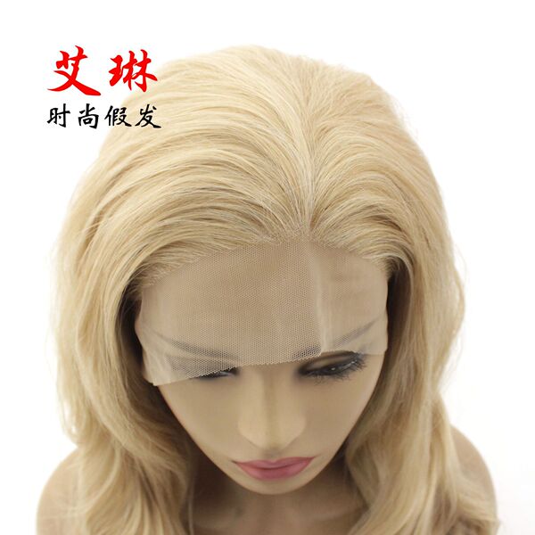 13*6 flaxen lace front full wig head cover high temperature silk chemical fiber mixed blonde co