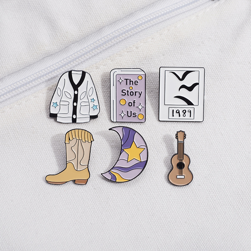 Cartoon creative glasses, metal cute brooch, high boots, badge