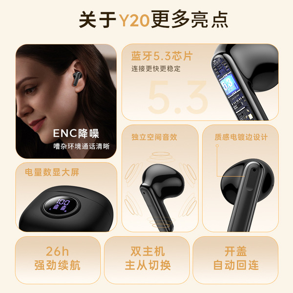 Y20 20 Bluetooth headset 5.3 new Amazon cross -border wireless semi -entered ear TWS private model headset ENC noise reduction double wheat