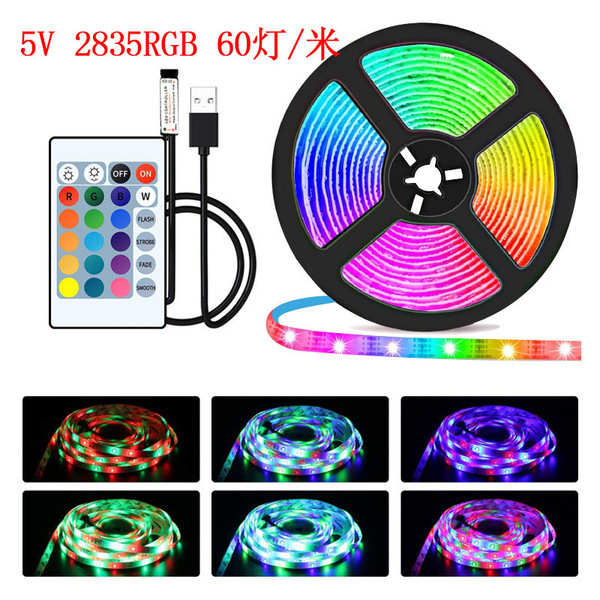 Cross-border 2835RGB light strip set 5VLED24 key Bluetooth remote control usb breathing colorful atmosphere waterproof decoration