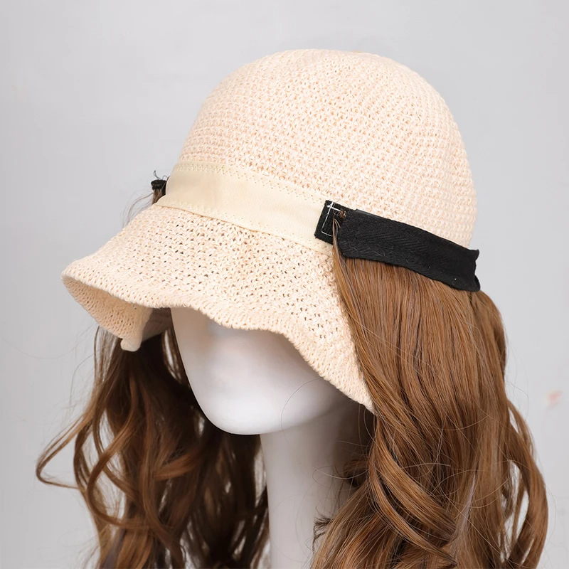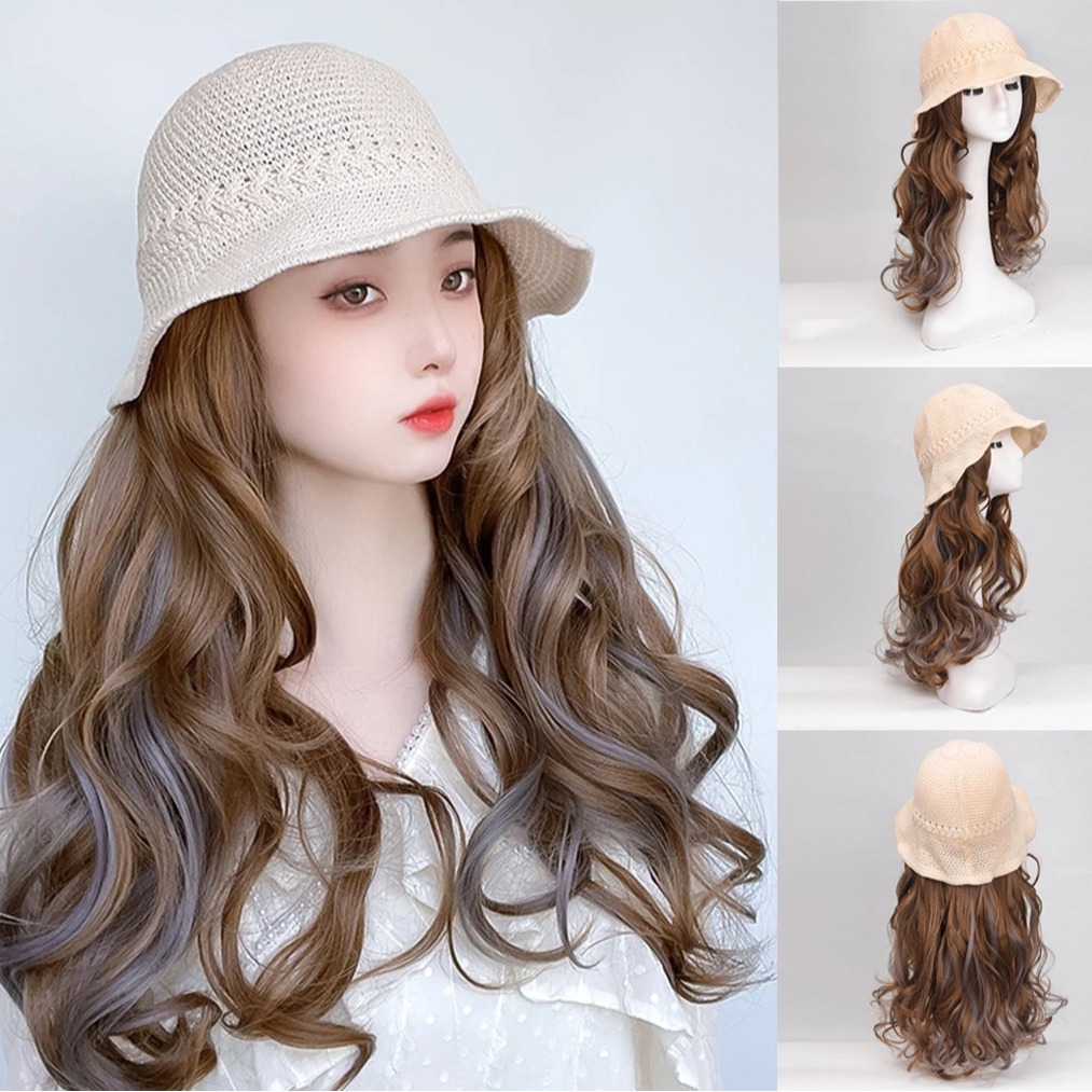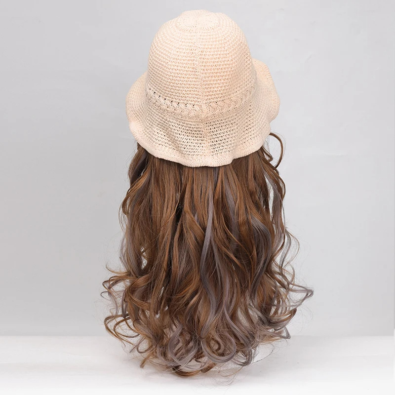 Summer hat, wavy wig solar-powered, straight hair, wholesale