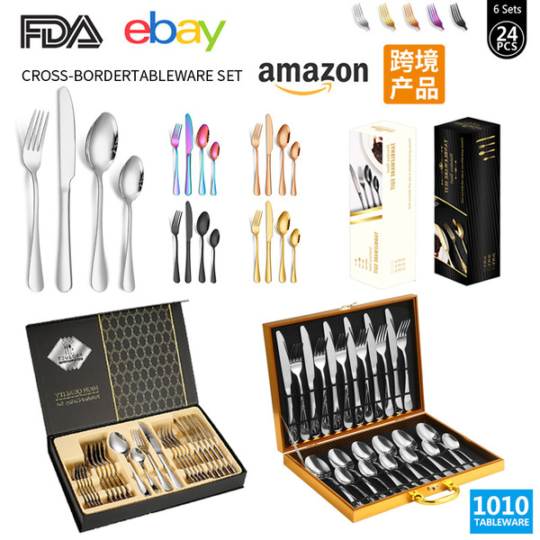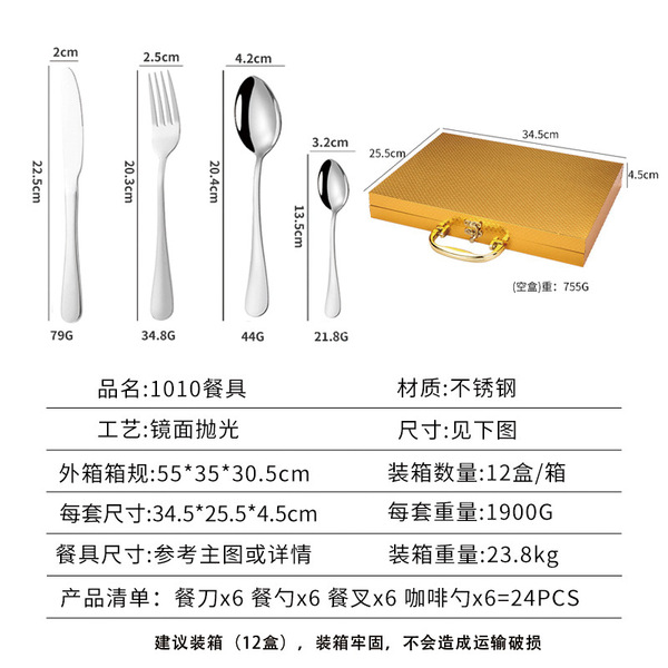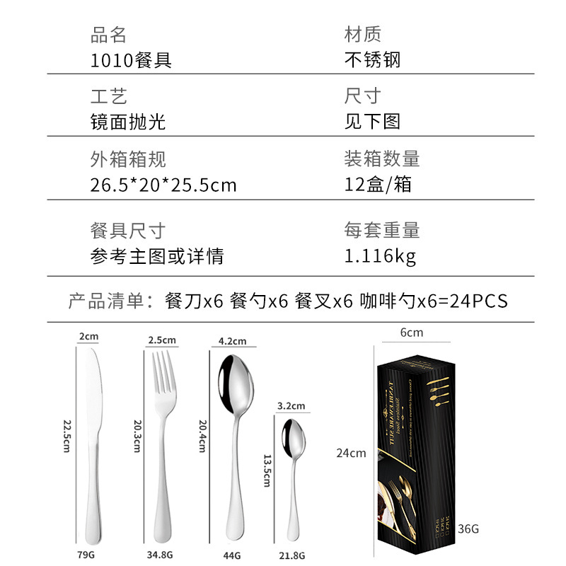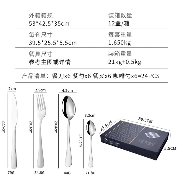 Tableware stainless steel, set, gift box, (Cross-border trading), 24 pieces