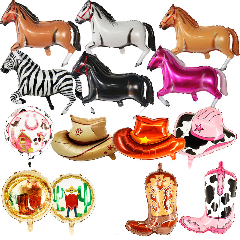 Horse Racing Festival Theme Balloon Party Horse Western Stampede Boots Hat Horseshoe Aluminum Film Balloon Scene Decoration