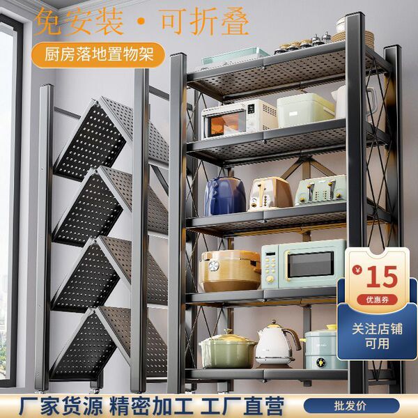 Installation-free kitchen storage rack multi-layer microwave oven balcony household foldable storage rack storage rack